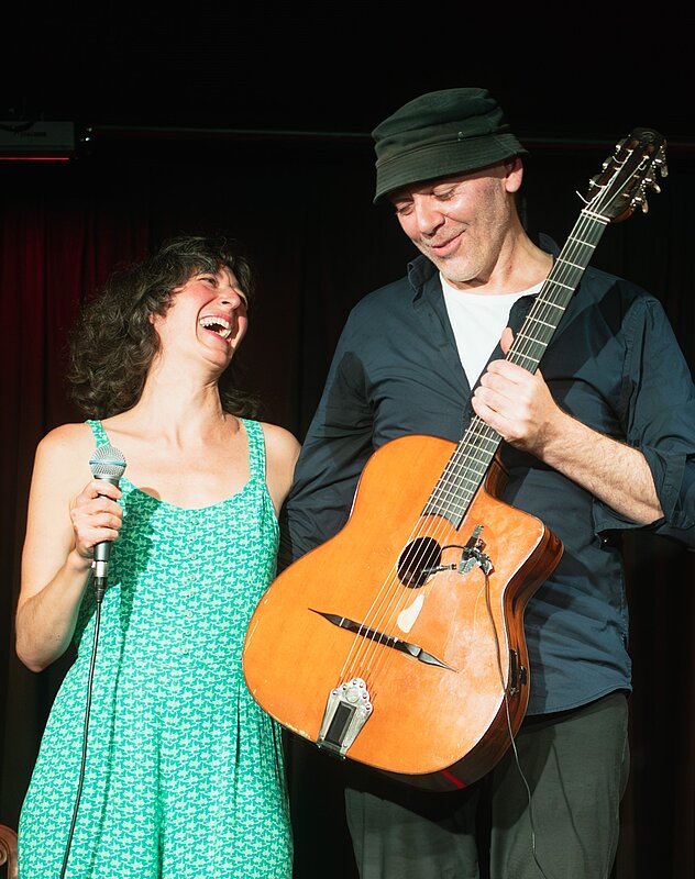 Mit Klarinette, Gitarre, Looper und Klavier schafft sie Klangbilder, die berühren. Ihre Chansons sind kleine Szenen voller Menschlichkeit – poetisch, ehrlich und mit einem Augenzwinkern.